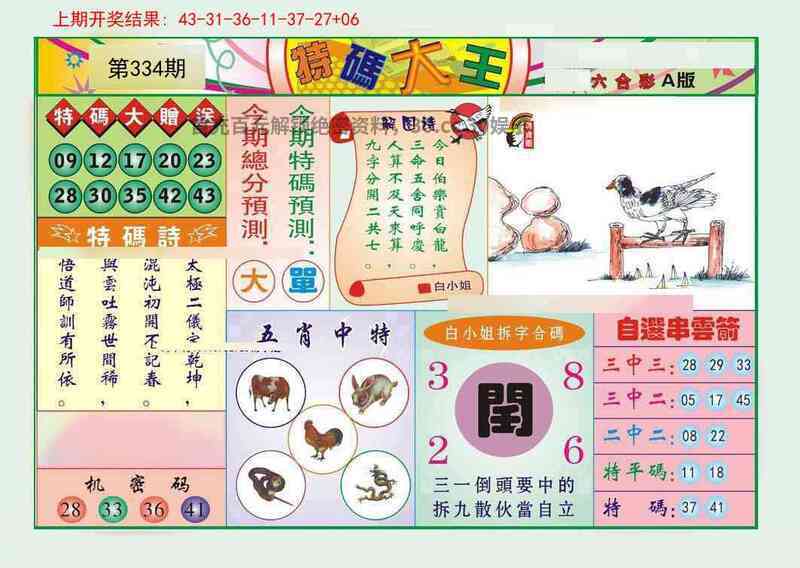 336期:凶美+两肖╠凶丑+鸡羊╣开:發00中